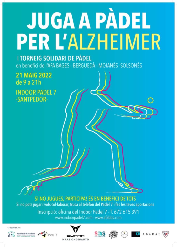 Aquest dissabte, 21 de maig, a les instal·lacions del Indoor Pàdel 7 de Santpedor es celebra el primer torneig solidari de pàdel en favor de l’Associació de Familiars de malalts d’Alzheimer i altres demències del Bages, Berguedà, Moianès i Solsonès.