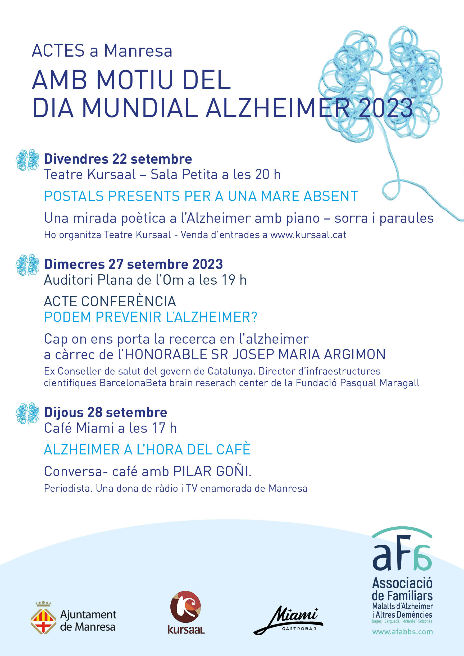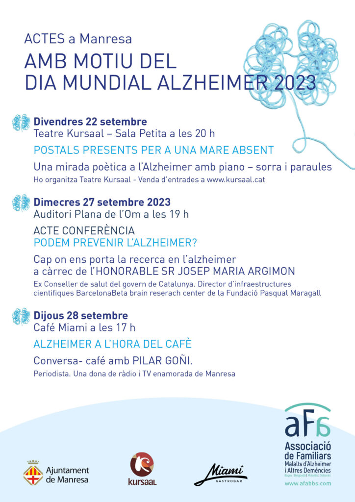 Amb motiu del dia Mundial de l’Alzheimer, desde l’Associació us presentem els actes que portarem a terme. Us hi esperem!!